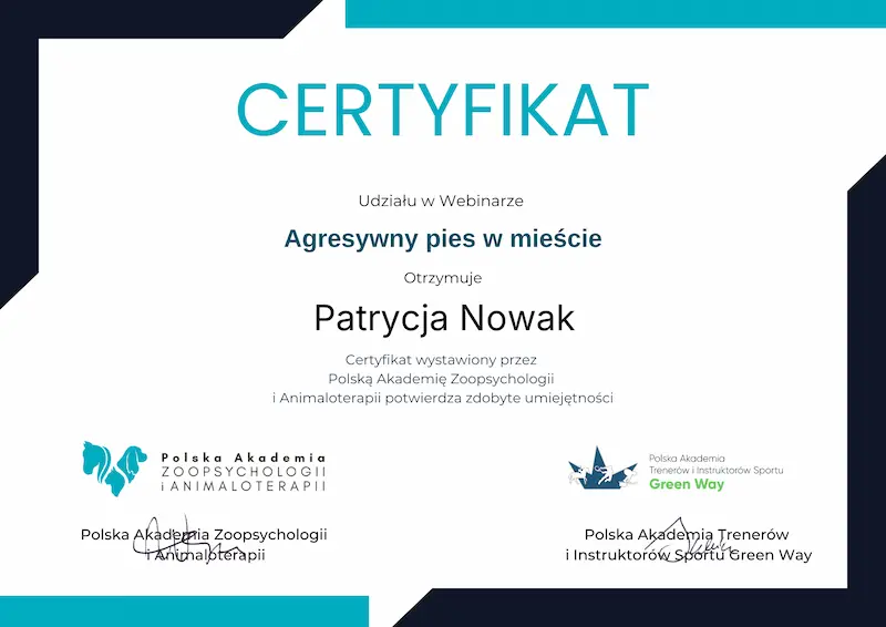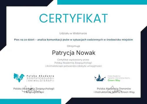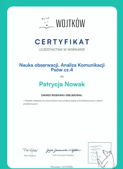 Nazywam się Patrycja - jestem trenerem i behawiorystą psów